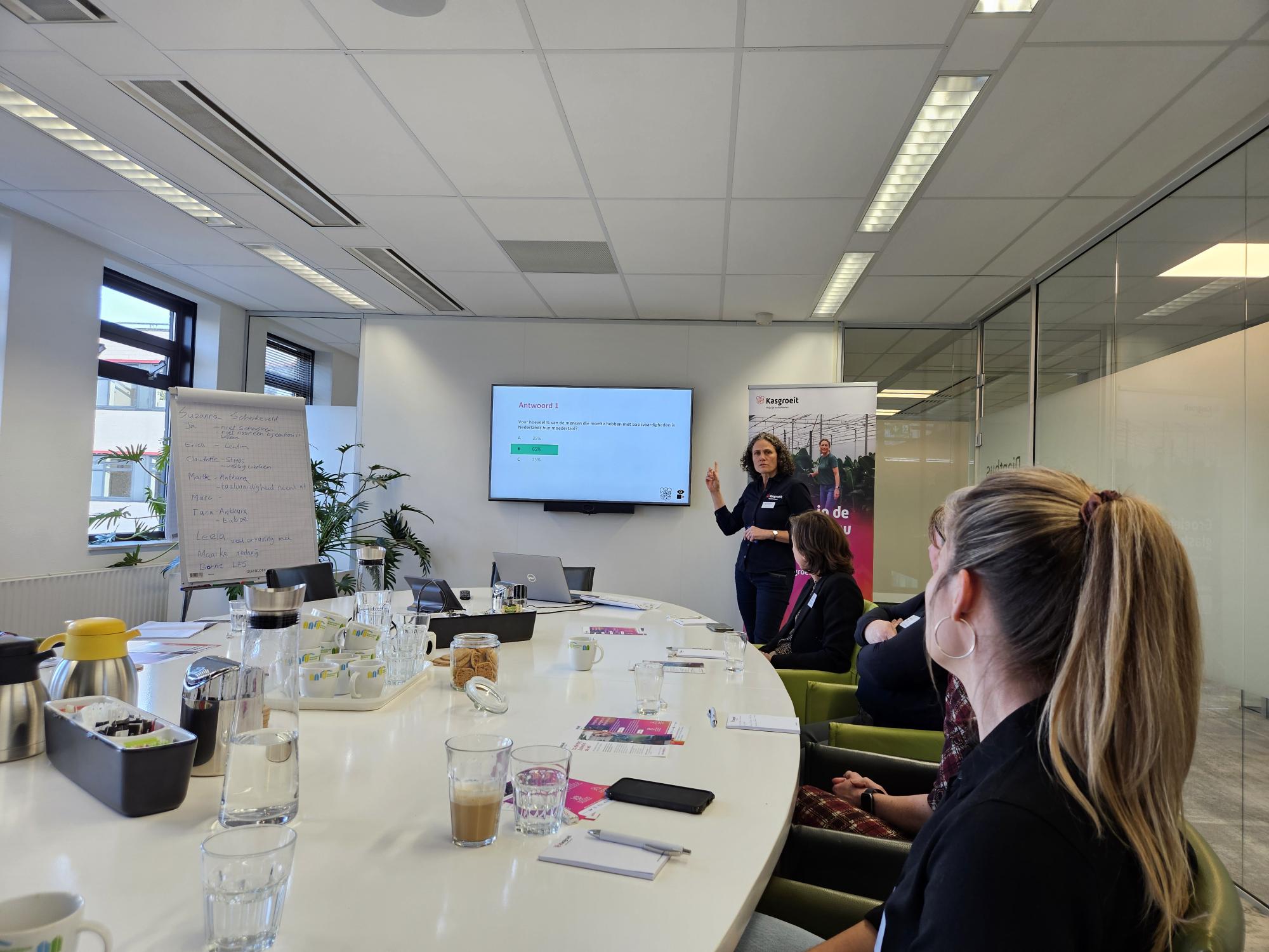 Tot slot vertelde Arna over de samenwerking tussen Kasgroeit en Stichting Lezen en Schrijven. Bedrijven krijgen gratis ondersteuning en advies op maat, bijvoorbeeld bij het organiseren van taalles of het versimpelen van veiligheidsinstructies. Investeren in basisvaardigheden levert veel op: meer productiviteit en kwaliteit, meer motivatie en behoud van personeel, minder verzuim en veiliger werken.